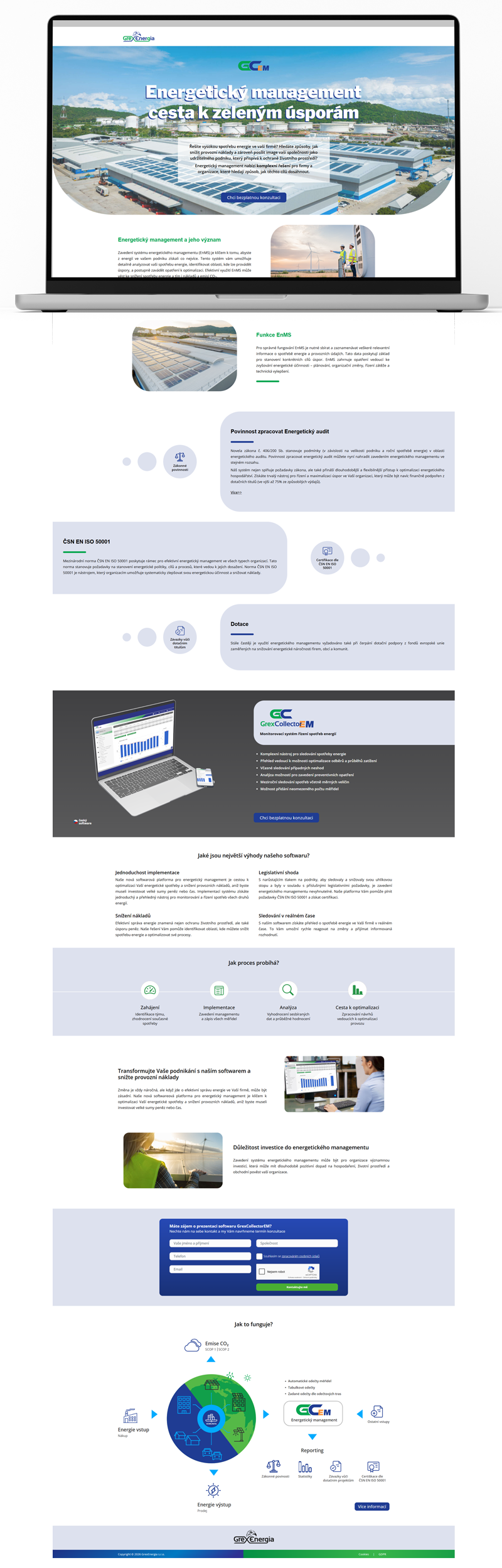 Pro potřeby marketingové kampaně byla navržena přehledná a funkčně strukturovaná webová prezentace představující aplikaci pro energetický management. Důraz byl kladen na srozumitelnou komunikaci přínosů, technickou odbornost a jasné vedení uživatele k dalším krokům.