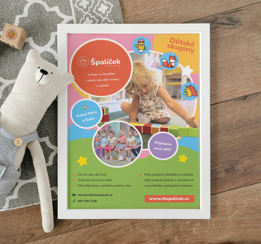 Projekt vizuální identity pro síť dětských skupin v Kolíně a Kutné Hoře.
